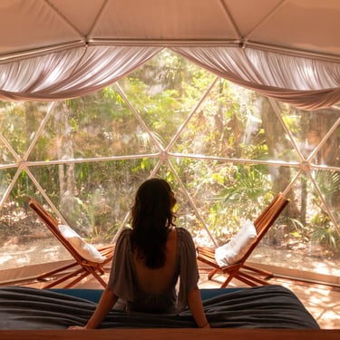 Ku Kuk Glamping es un glamping en operación conformado por 7 domos privados con acomodos diferentes, cada uno con baño propio y detalles de diseño inmersos en la selva. El complejo cuenta con áreas comunes pensadas para la experiencia—alberca, palapa y cocina exterior—que elevan la estadía y la tarifa percibida.